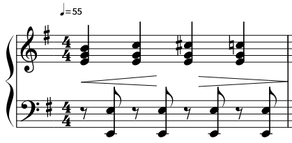 - E-Moll -> verminderter Sextakkord -> reiner Sextakkord -> und retour.